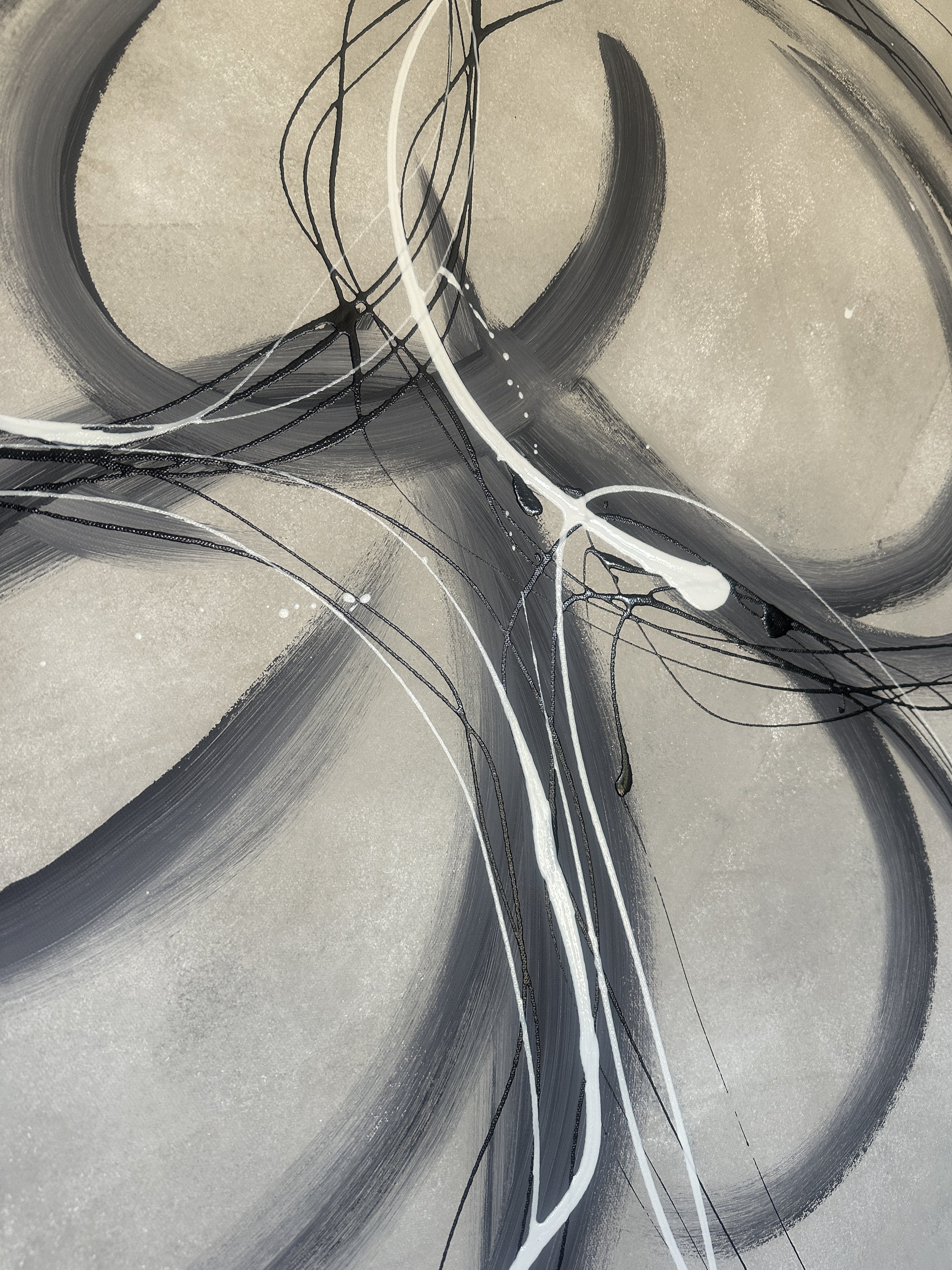 Circular Flux’s motion draws the gaze into its swirling narrative of overlapping circular and spiral shapes, their forms both beguiling and profound. Shades of gray and white intermingle, creating a delicate ballet of shadow and light that informs the landscape with an unseen vitality, subtly whispering secrets from the boundaries of perception.