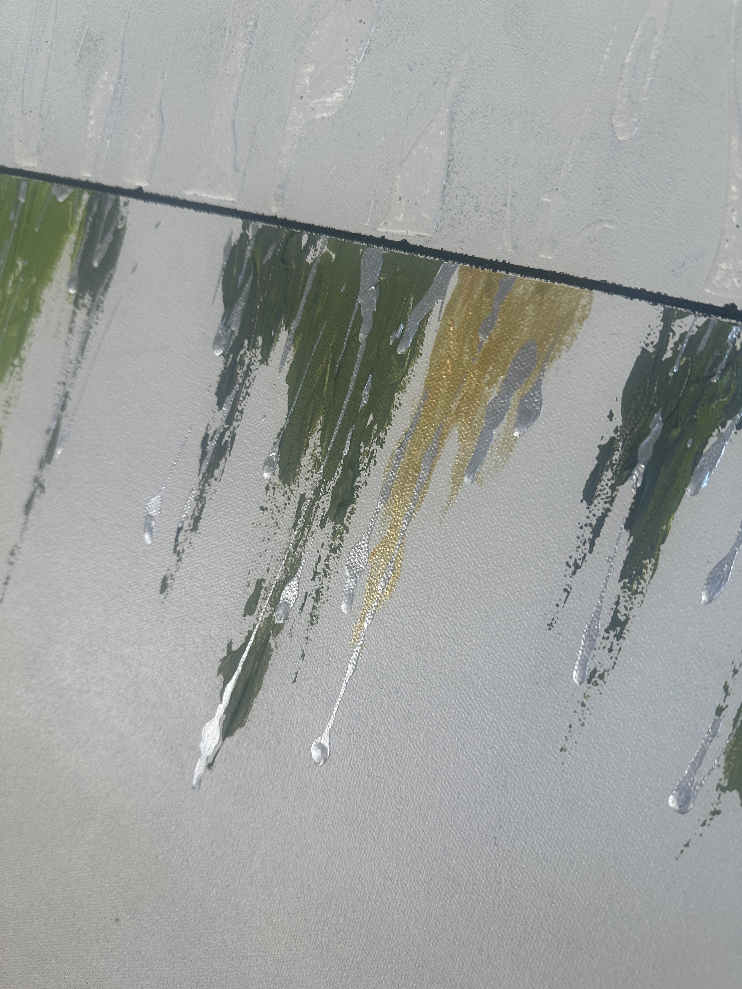 Metallic Vitality is an alchemical stage where vivid hues and tangible textures converge in a dramatic embrace. It captivates the senses with its audacious dance of citrus greens and metallic whispers. Here, energy does not merely reside but surges forth, alive and vibrant, drawing the viewer into its dynamic pulse.